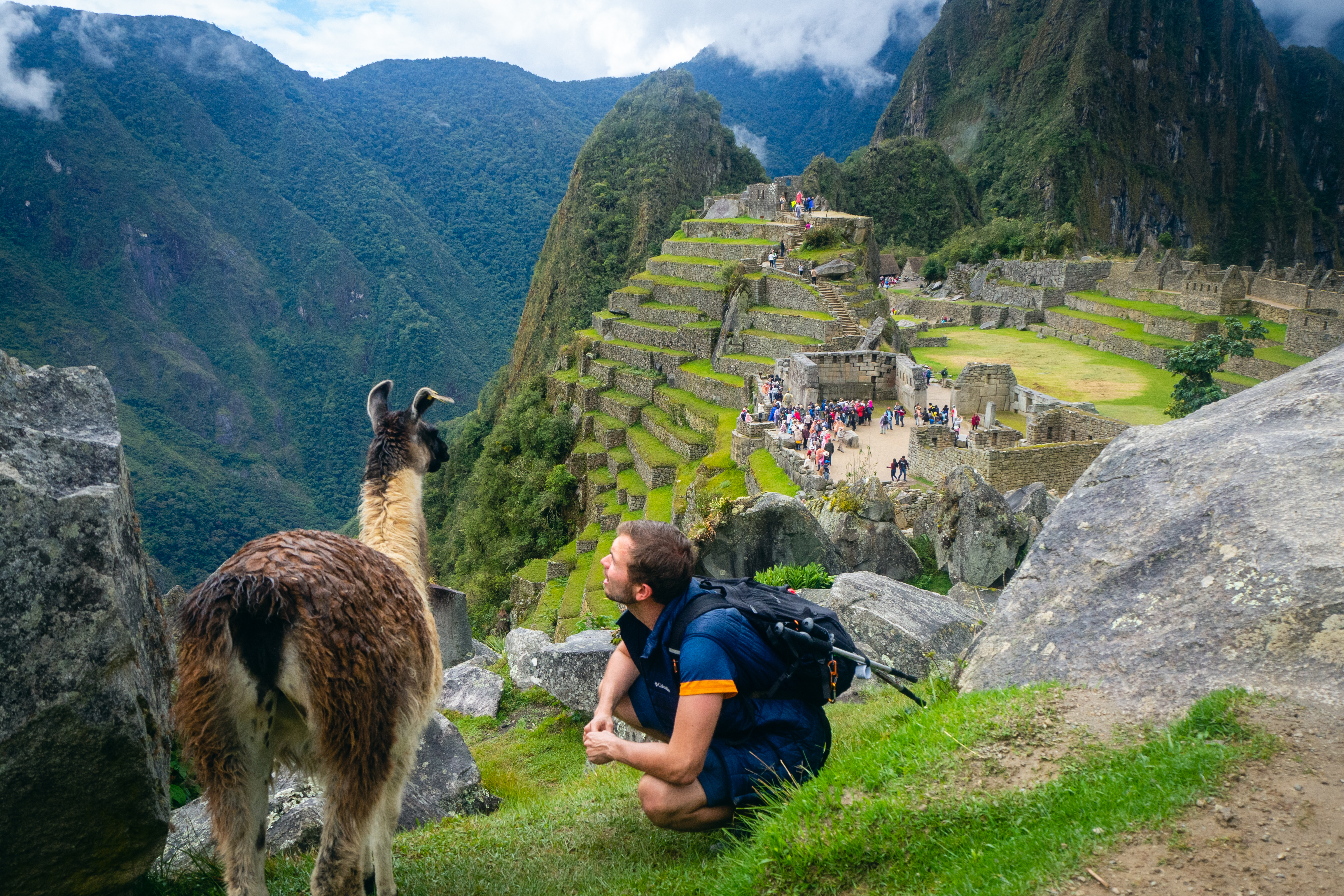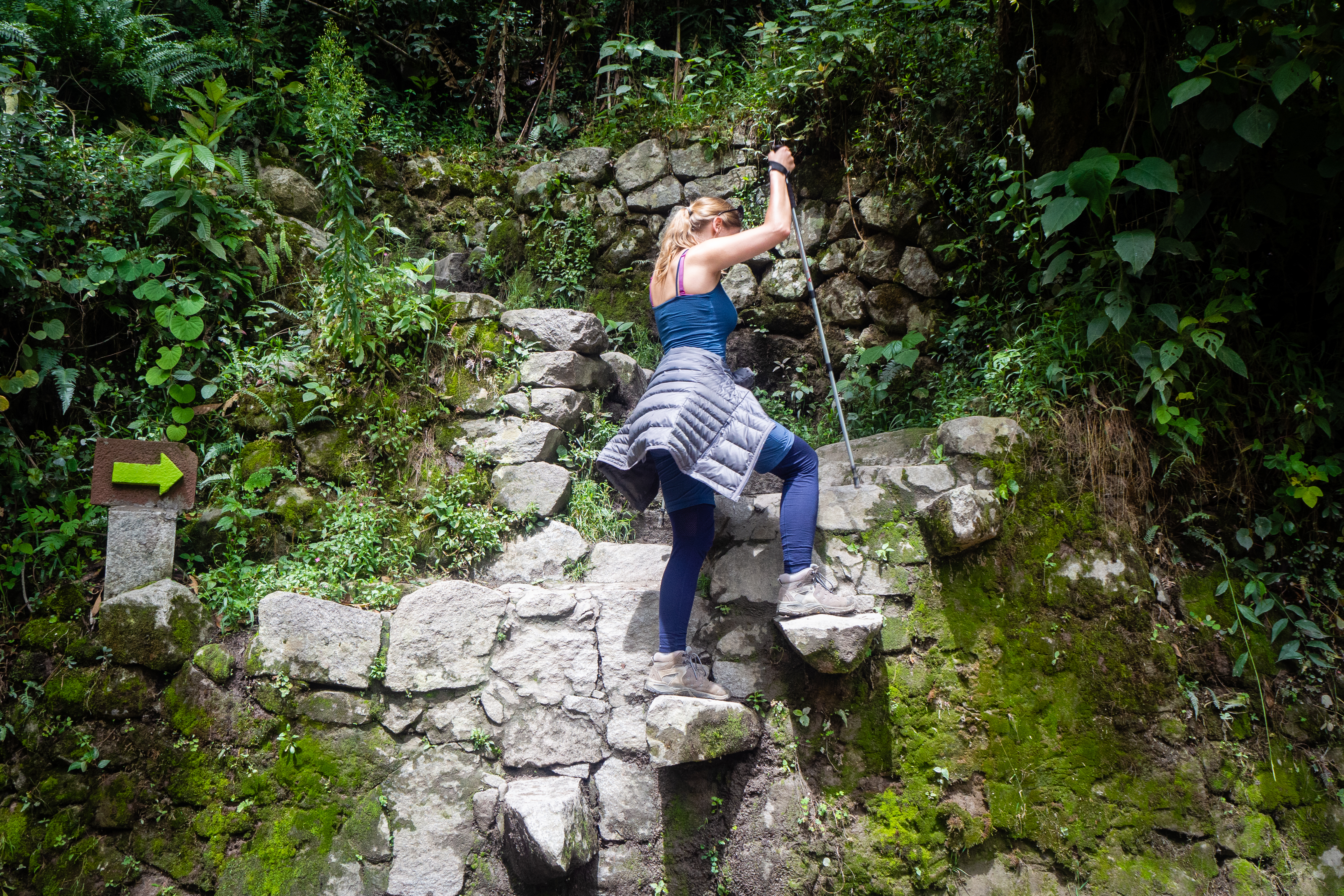 Przy wejściu do ruin byliśmy już o 11:10. Droga z Machu Picchu Pueblo do Machu Picchu zajęła nam 1 h 15 min. Po opuszczeniu terenu miasteczka i przejściu mostu należy skręcić w lewo na kolejny most, by tam już zacząć wspinaczkę po skalnych stromych schodach na samą górę do miasta Inków. W ten sposób pokonujemy, jak podaje Internet, około 2000 schodów. Dla tych, którym zdrowie nie pozwala (lub po prostu wygrywa wygoda) jest inna opcja. Z Machu Picchu Pueblo (tuż przy samym początku miasteczka) odjeżdżają autobusy, które wiozą turystów pod samo wejście na teren ruin. Taka przyjemność kosztuje jednak 25 $ w dwie strony (można zakupić bilet w jedną stronę za połowę ceny i oszczędzić sobie wchodzenia, a zejście, które jest łatwiejsze pokonać samodzielnie). W samym mieście Inków spędziliśmy nieco ponad półtorej godziny, a zejście do Machu Picchu Pueblo zajęło nam łącznie godzinę.
